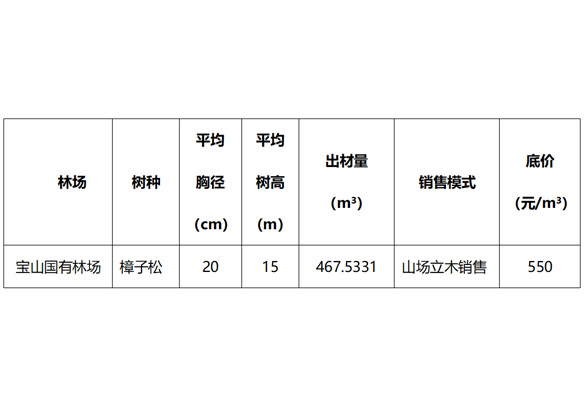 2025年12月4日 09:00进行网络拍卖。并于2025年11月27日在發步公告平台(www.fbggl.cn)上发布了《磐石市林业局宝山国有林场2025年度木材拍卖公告》进行了公示。
